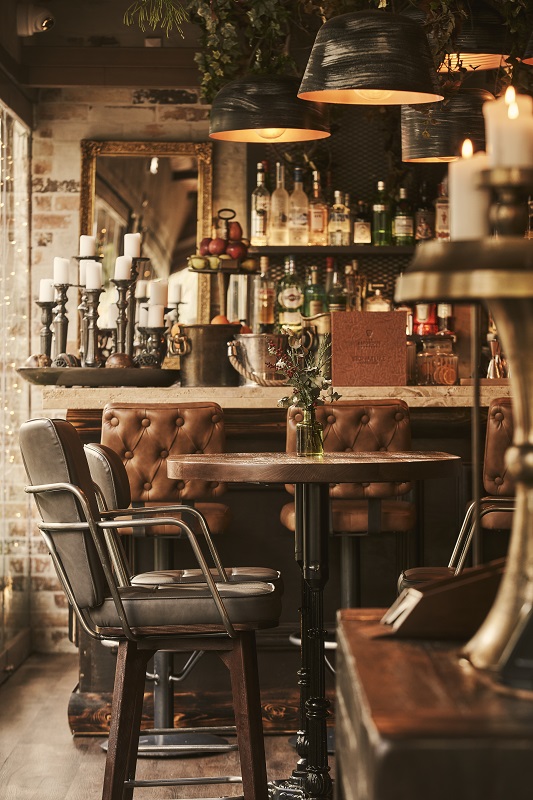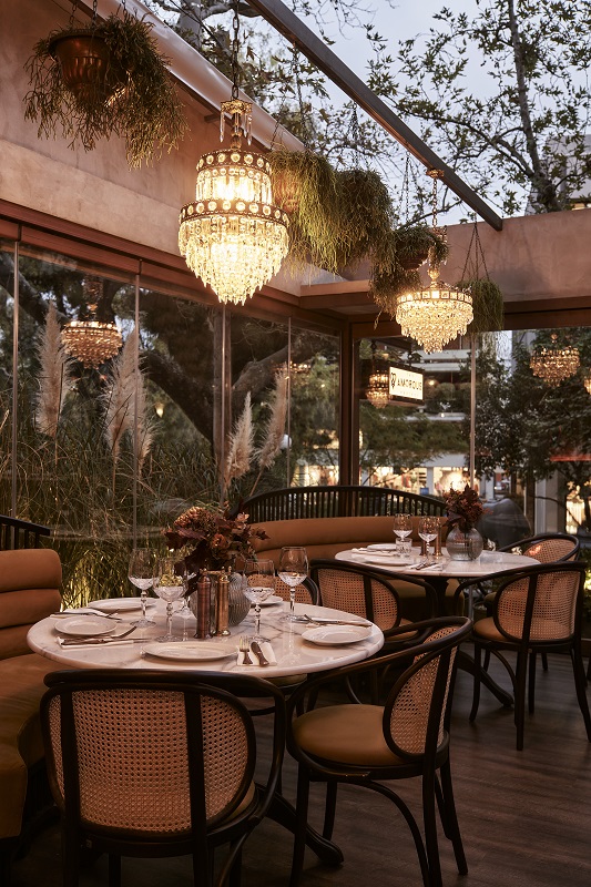 Στον χώρο κυριαρχούν το ξύλο και το σίδερο σε vintage αισθητική και σκούρους τόνους σε συνδυασμό με αποχρώσεις της τερακότας, δημιουργώντας την πιο ζεστή retro ατμόσφαιρα. Καρέκλες από βιενέζικη ψάθα, βαριές κορνίζες και σκαλιστοί καθρέφτες στους τοίχους, πολυέλαιοι, κολονάτα ποτήρια, υφασμάτινες πετσέτες και λινά τραπεζομάντηλα, βαριά vintage μαχαιροπήρουνα, λεπτεπίλεπτες πορσελάνες και μεγάλα κηροπήγια με λευκά κεριά συνθέτουν ένα άκρως σαγηνευτικό σκηνικό, βγαλμένο θαρρείς από μυθιστόρημα της Jane Austen.
